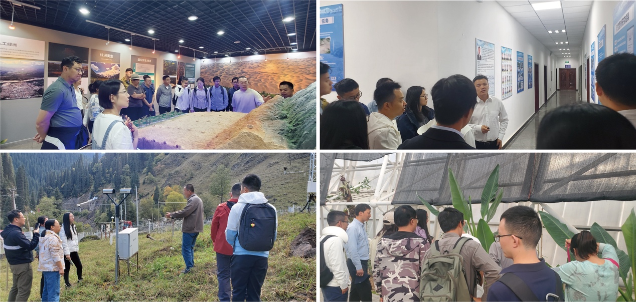 在实地考察活动中,与会人员先后走访参观了昌吉国家农业高新技术产业示范区、中国科学院新疆自然博物馆、伊犁河流域生态系统研究站(天山积雪雪崩研究站)、天山积雪雪崩新疆野外科学观测研究站(简称“积雪雪崩站”),以及伊犁植物园,近距离了解新疆特色科研领域与创新性成果??疾炱诩?,新疆生地所副所长段伟利研究员详细介绍了积雪雪崩站的发展历程和前辈及科研团队在积雪监测、雪崩预警、雪水循环等领域取得的重要成果。新疆生地所科研处处长周晓兵研究员结合我国生态领域科研需求,建议两地青促会成员及青年学者围绕盐碱地改良、抗逆植物与种质资源开发利用、土壤生态学等方面加强合作,积极推动项目联合申报和成果落地。干旱区生态安全与可持续发展全国重点实验室副主任杨震雷研究员分享了从烟雨江南到胡杨深处的科研经历,讲述了扎根边疆、投身干旱区生态研究的心路历程。新疆自然博物馆馆长李文军研究员详细讲解了新疆生地所在塔克拉玛干沙漠锁边工程中的先进技术与实践经验,并带领考察团参观“大漠魂 边疆情”党员主题教育基地,让大家深刻感受新疆生态治理的艰辛与成就。伊犁植物园副主任刘会良研究员详细讲解了伊犁植物园的建园历史,以及在野苹果、葱属等种质资源保育以及脆弱区生态修复方面的研究工作,同时分享了华南植物园与伊犁植物园合作的经验,提出未来在国家植物园体系内加强联动,尤其在石斛、甘草、枸杞等资源植物开发保育领域开展深度合作的设想。